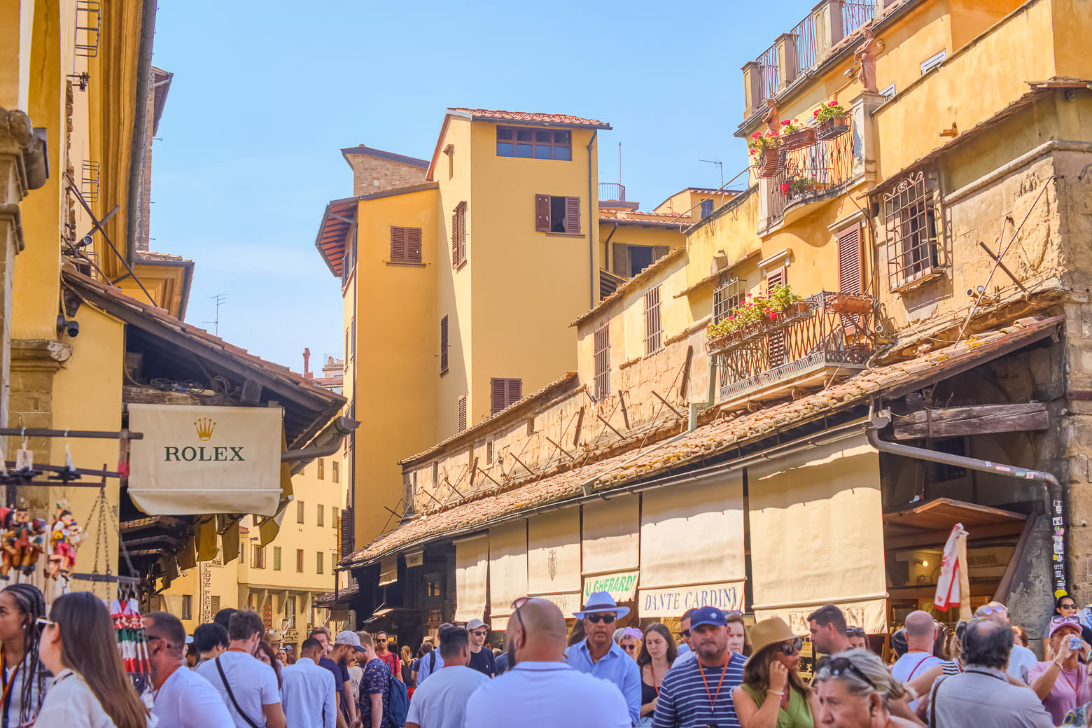 Right around the corner, your guide will lead you to the intriguing PONTE VECCHIO - a true icon of the city. This bridge is famous for its exclusive jewelry stores, unique structure, and for being the only bridge spared during the bombings during the Second World War.